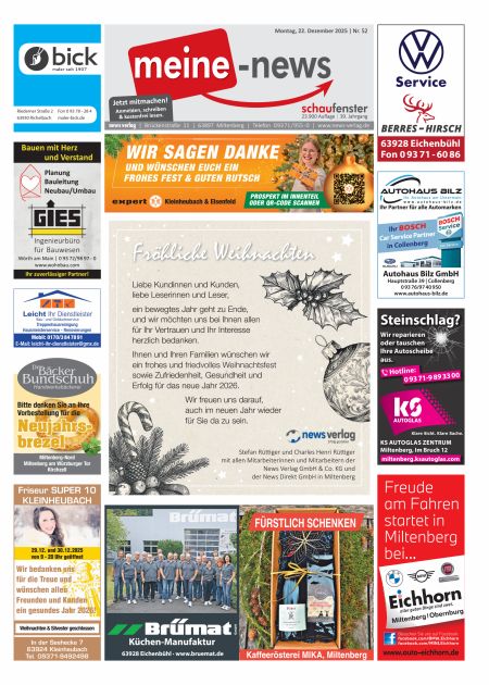 Seit 35 Jahren DIE kostenfreie Wochenzeitung für den südlichen Landkreis Miltenberg.